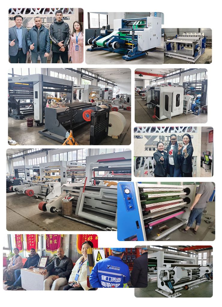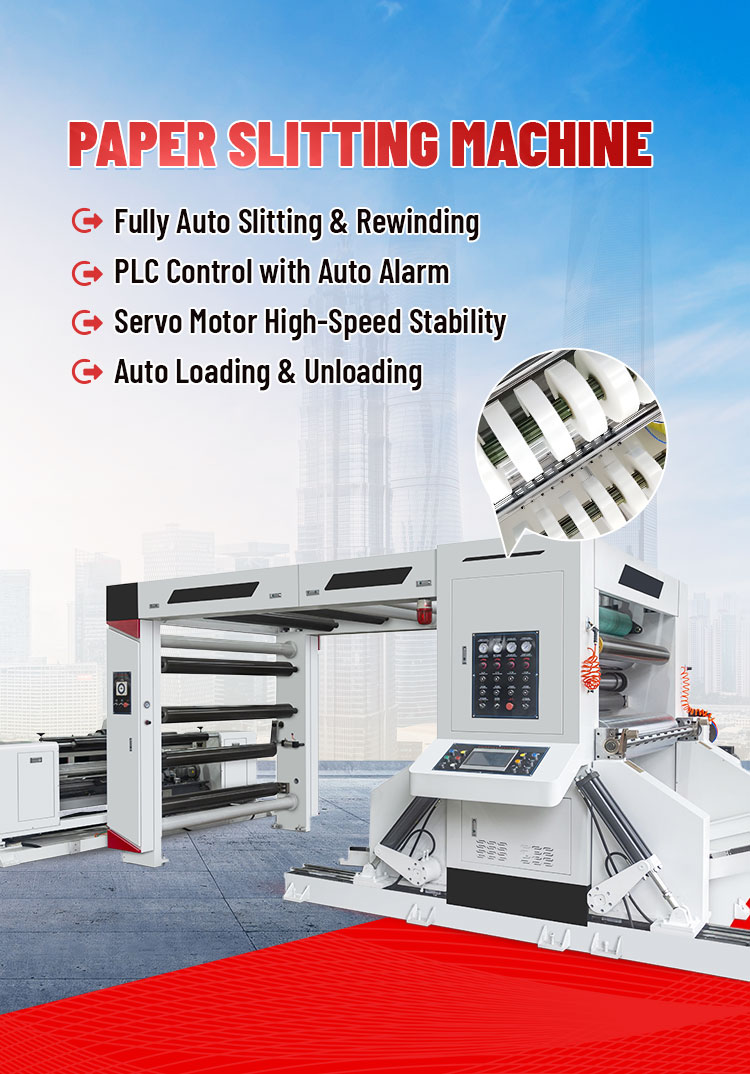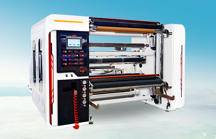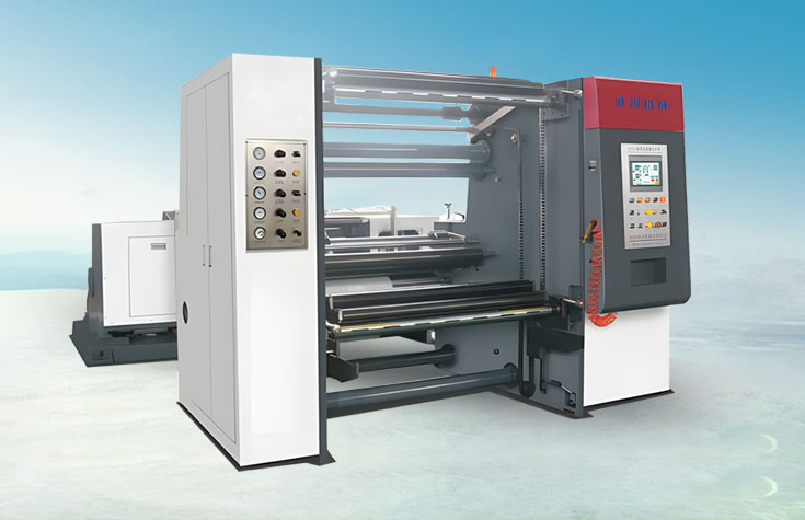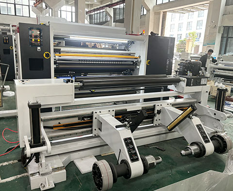 This machine is used for slitting and rewinding various large rolling materials such as paper, (kraft paper, cellophane paper, bill paper), double-face adhesive tape, PVC, plastic material, etc.